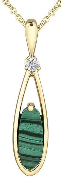 (705) 435-646010kt Yellow Gold Oval Malachite & 0.043cttw Diamond Pendant